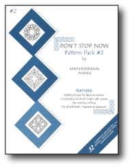 Don't Stop Now Collection #2 Pantographs DSN2 - 32 continuous line quilting designs for hand or machine quilting. 1-2 lines of quilting. Stitching diagrams included. Tips from the designer. Designs can also be used for Redwork, Stained Glass Applique, Trapunto, Embellishing Garmets and more!