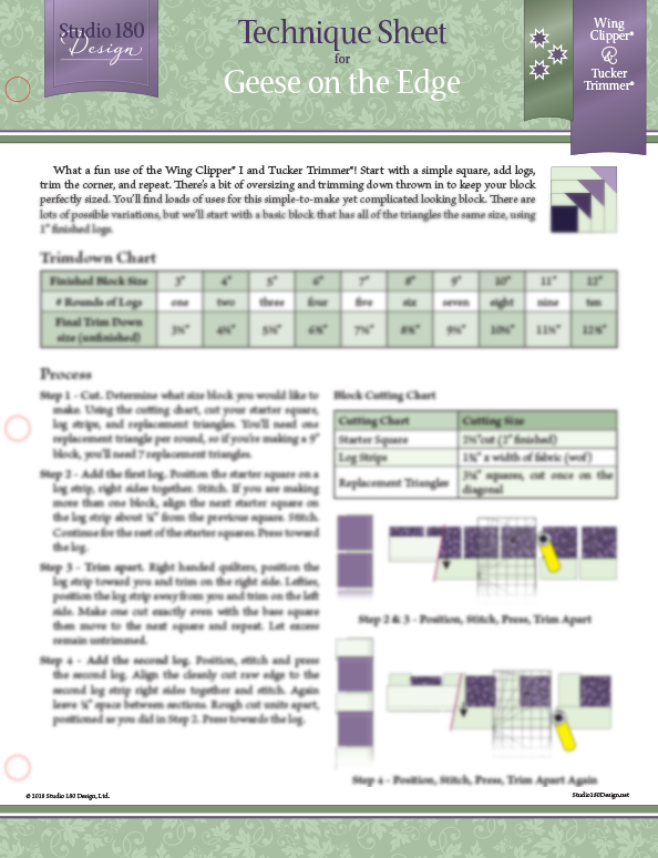 What a fun use of the Wing Clipper and Tucker Trimmer! Start with a simple square, add logs, trim the corner, and repeat. There’s a bit of oversizing and trimming down thrown in to keep your block perfectly sized. You’ll find loads of uses for this simple-to-make yet complicated looking block, and you'll be amazed at the possible variations!