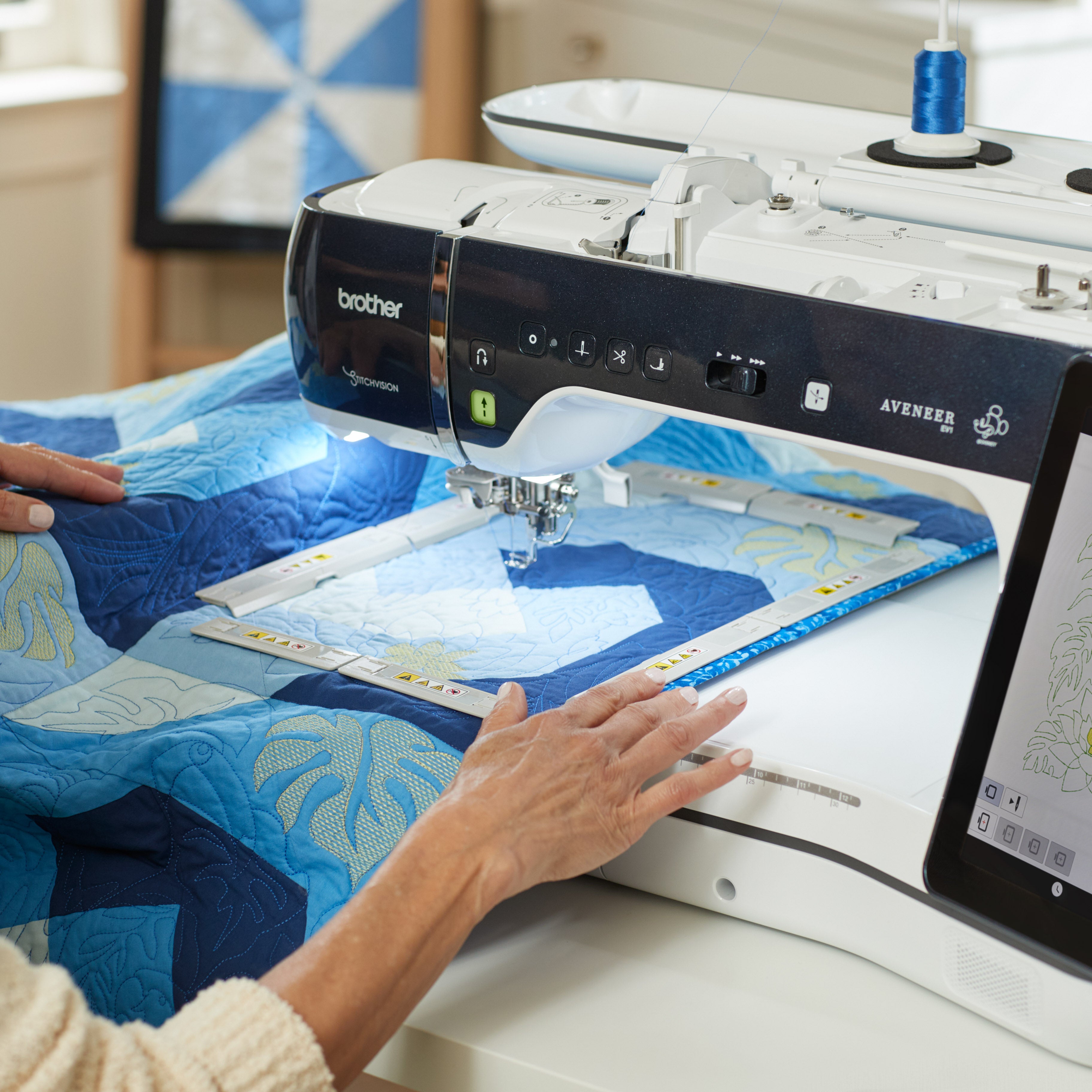 With easy-to-follow instructions and 15 patterns to choose from, this dynamic feature lets users finish their quilt top directly on the Aveneer EV1 – even with a 10” x 10” magnetic hoop! No need for a Long Arm! The bobbin now holds 10% more thread than previous models.