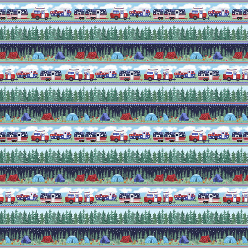 Camp USA Dark Blue Camping Border Stripe - CAMPUSA-B-3071-77 - Blank Quilting