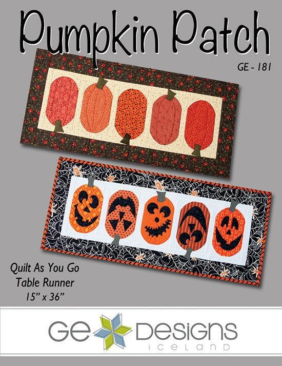 A quilt as you go Table runner pattern using 10" squares and made with a Quilt As You Go method. The templates for the optional Jack-o-lantern fusible appliques can be downloaded and found on the Free Patterns and Templates tab. Size 15" x 36".