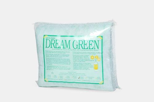 Dream Green is a soft, cozy batting made 100% from recycled plastic bottles! Dream Green meets our highest standards of quality, function, and performance. Your needles will glide through this unique eco-friendly batting. Finished quilt may be machine-washed and dried with little to no shrinkage. Dream Green is wrinkle-resistant.