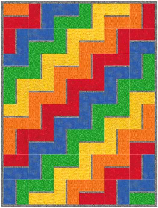 Splicey Quilt Pattern PDF Digital Download finishes at 45" x 60". The Splicey Throw Quilt Pattern is designed by Teresa Coenen of Stitchin' Tree is a fun pattern creating steps. Splicey uses 4 coordinating fabrics and 1 yard contrasting fabric.