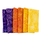 Various Batiks Half Yard Bundle Purple/Yellow/Orange Multi 6 Pieces