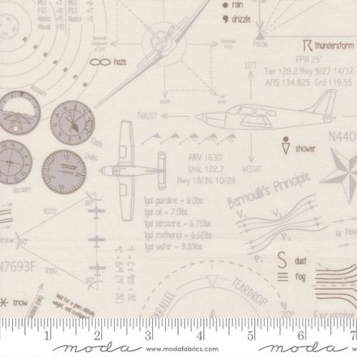 High Flight Ground School Novelty Map Text Diagrams Sky - 45061 14 - Moda Fabrics - 1 Yard Cut - Ver