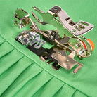 Create stunning pleats/ruffles with ease when using the Ruffling Foot. With the option to customize the depth and spacing it is possible to create pleats/ruffles that are structured and refined or detailed and elegant. Simply attach the Ruffling Foot, make the desired adjustments and stitch, adding an upscale detail to any project.
