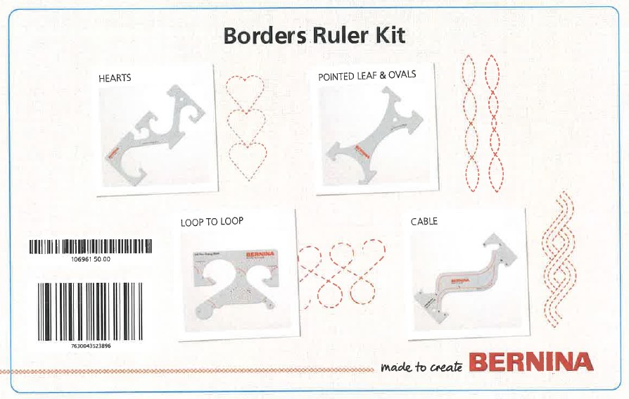 4 piece Ruler work rulers. These tools are designed for machine quilting using either a home machine or a longarm. If you are using the tools on a machine that moves, be sure to have a ruler base attached to your machine. The dimensions of these tools are designed with the #72 or #96 ruler foot in mind. The tools have registration lines for ease in aligning the tools to create designs.