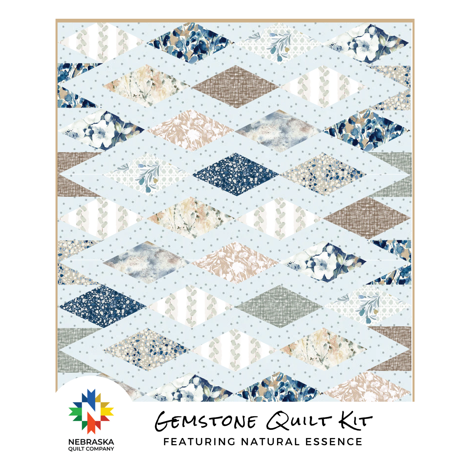 The Gemstone Quilt Kit featuring Natural Essence designed by Jacqueline Maldonado for FIGO Fabrics uses diamonds to showcase the beautiful natural themes of the collection. This kit includes 6 yards of fabric to create the quilt top and binding; batting and backing sold separtely.