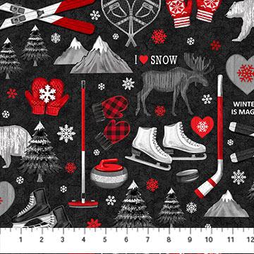 Cozy Up Flannel Winter Pattern Black - F25515-99 - Northcott Fabrics
