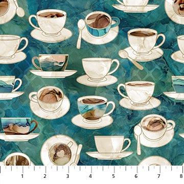 Barista Cups & Saucers Dark Teal Multi - DP27698-68 - Northcott Fabrics