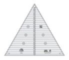 Cut 30 and 60 degree angles up to a finished height of 12in. This 60 degree equilateral triangle features easy to read black and white markings. A 1/4in dashed line is printed on each side of the center vertical line so you can cut 30 degree triangles that include the seam allowance.