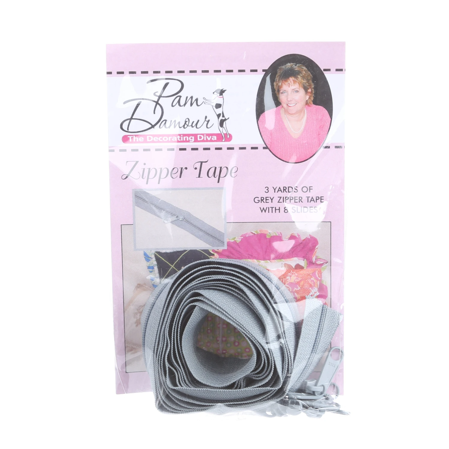 3 yards of Reversible Coil Zipper Tape with 8 Slides Gray