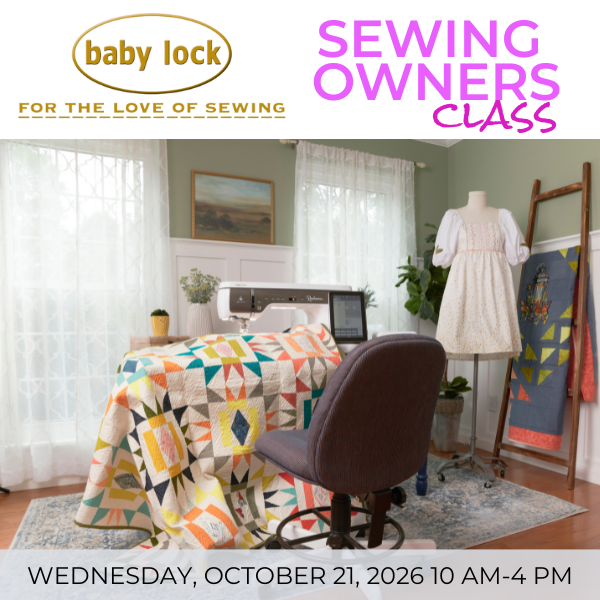 Baby Lock Owners Class Wed, October 21st, 2026 - 10 AM to 4 PM