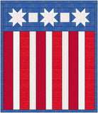 United Quilt Pattern finishes at 52" x 60". The United Throw Quilt Pattern is designed by Teresa Coenen of Stitchin' Tree is a fun pattern looking patriotic. United uses 2 reds, 2 whites, and 2 blues for fabric.