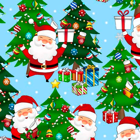 Christmas Favorites Santas and Christmas Trees Blue - 30329-B - QT Fabrics