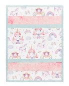 Let the little one in your life drift off while reading their favorite fairytale, wrapped up in this super cute fairytale-themed Cuddle® quilt featuring awe-inspiring rainbows, castles, unicorns and more! Our Bambino Cuddle® Kit Enchanted Dream includes Fairytale Digital Cuddle® Blush, Luxe Cuddle® Galaxy Blush, and Luxe Cuddle® Marble Saltwater for the top, and Luxe Cuddle® Marble Saltwater for the binding and Fairytale Digital Cuddle® Blush for the backing. This Bambino Cuddle® kit quilt is approximately 28" by 37" and includes a pattern and strips for the quilt top, backing and binding.