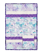 Dinosaurs might be extinct, but they're alive in our imaginations! Our Picture Perfect Cuddle® Kit Rawrsome! Bellflower includes our T-Rex Digital Cuddle® Bellflower print that features triceratops, stegosaurus, pterodactyls and t-rex illustrations that look like they're created with a mix of ink, watercolor and crayon. This quilt and pillow kit also includes our Luxe Cuddle® Sorbet Mermaid, Luxe Cuddle® Frost Iris, Luxe Cuddle® Luna Jewel and Luxe Cuddle® Galaxy Viola (for the binding) fabrics. This Picture Perfect Cuddle® Kit quilt is approximately 38" by 58" and includes a pattern, pre-cut strips and binding, and we recommend using Cuddle® 3 Bellflower, Cuddle® 3 Viola or Luxe Cuddle® Sorbet Mermaid for the backing (approximately 1 1/8 yards needed).