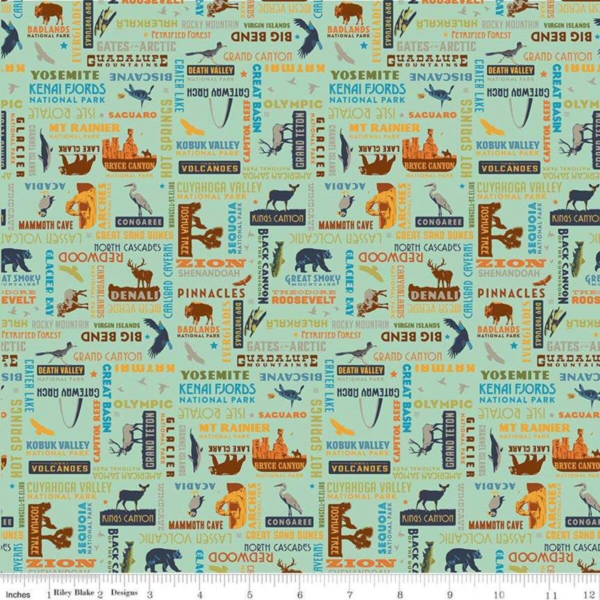National Parks Word Print Sea Green - C8784-SEAGREEN - Riley Blake Designs