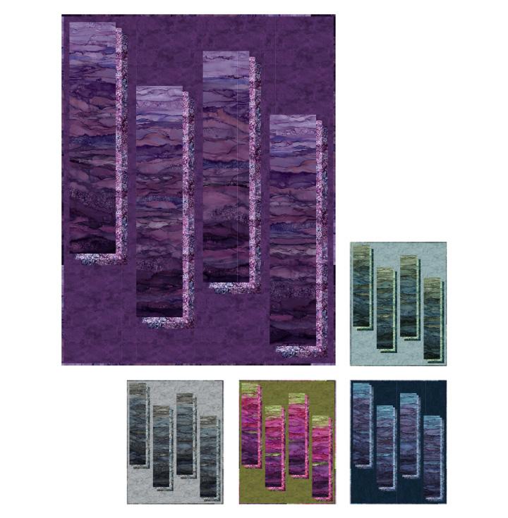 Showcase a show-stopping selvage to selvage ombre or large-scale non-directional print and combine with light and dark coordinates in this unique and quick strip quilt. Includes instructions for quick and easy machine binding.
