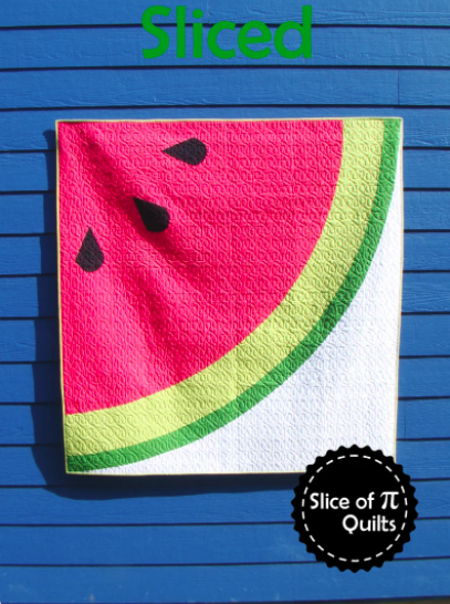 Quilting pattern by Laura Piland of Slice of PI Quilts. Sliced is the perfect picnic quilt! The mini version makes a great table topper for all of your summer get-togethers. This intermediate-level pattern come together quickly and uses curved seams and non-traditional cutting methods.