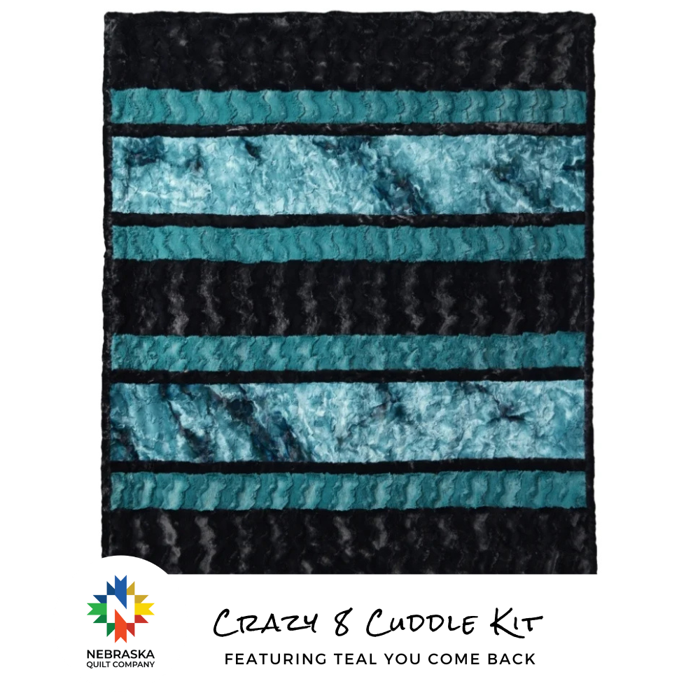 Come back for teal! We’re crazy for this new Cuddle® quilt with a bit of galaxy mallard to really bring out the texture. If you are as crazy for teal as we are, you need the Crazy 8 Cuddle® Kit Teal You Come Back. This kit combines the unique galaxy swirls with bold blacks and includes our Luxe Cuddle® Glacier Black, Luxe Cuddle® Galaxy Mallard, and Luxe Cuddle® Marble Black fabrics.
