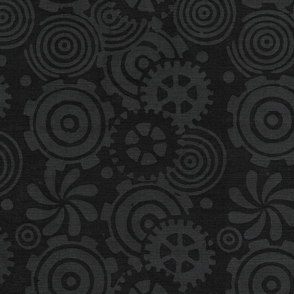 Island Batik Gears Black - 1 Yard Left - Verified!