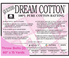 Quilters Dream Natural Cotton Select Batting Throw Bolts (2) 60" x 15 Yards
