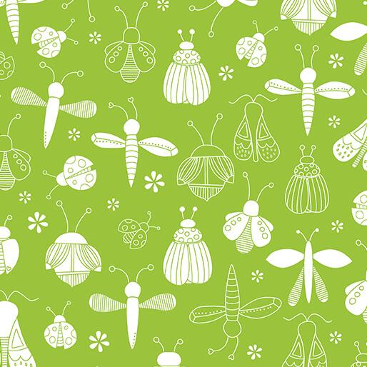 Lucky Bugs Bucket of Bugs Grass Green - 16557-43 - Benartex