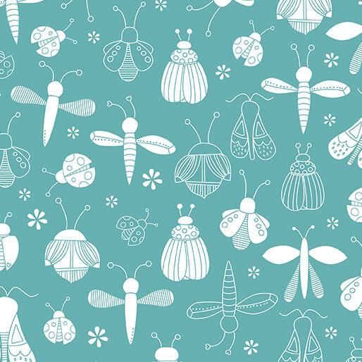 Lucky Bugs Bucket of Bugs Turquoise Blue - 16557-83 - Benartex