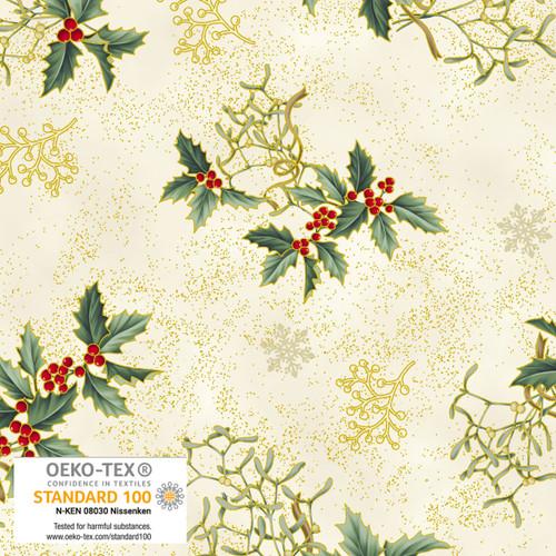 Christmas Stars Holly & Mistletoe Cream/Gold - 4592-011 - Blank Quilting