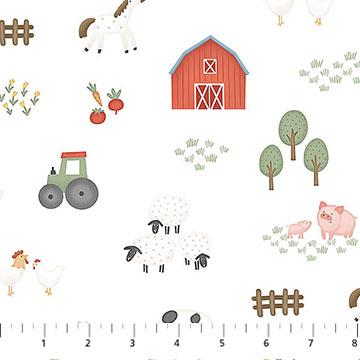 Quack Quack Moo Barn & Tractor Toss White - 27815-10 - Northcott Fabrics