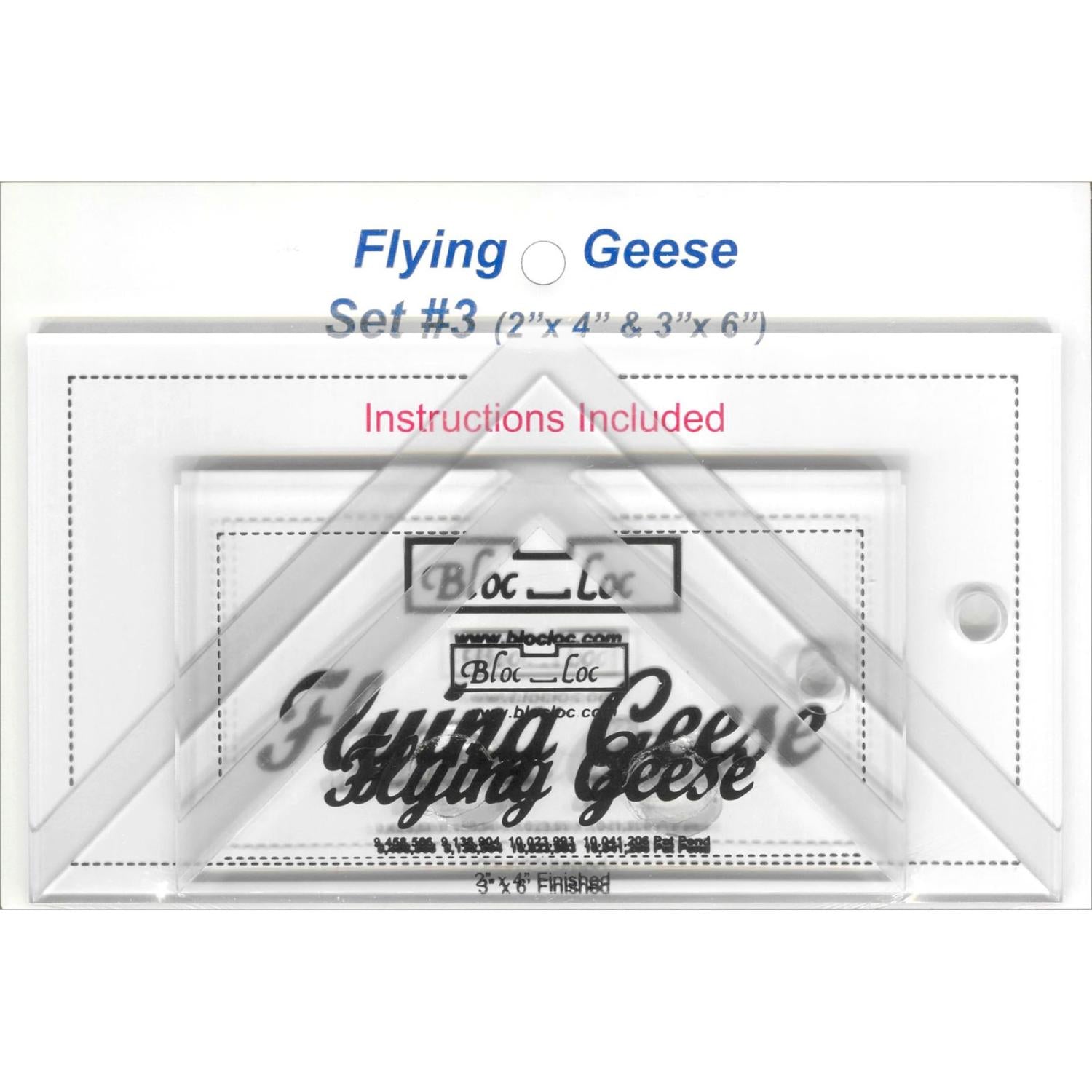 Each flying geese ruler trims to the finished size (listed on the ruler) plus the seam allowances on all four sides.