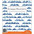 The Scrappy Mountains foundation pad measures 7" x 8" and contains: - 50 different Scrappy Mountain designs. Each design is repeated twice for a total of 100 foundations - Basic cutting and construction instructions - A link to detailed written and video instructions on how to foundation paper piece and assemble the Scrappy Mountain blocks -A link to a free quilt pattern using the Scrappy Mountain blocks