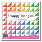 The Scrappy Triangles foundation pad includes supply/fabric requirements, a link to an in-depth tutorial and video, and 50 different Scrappy Triangle foundations. There are enough foundations in each pad to make a 42” x 42” quilt.