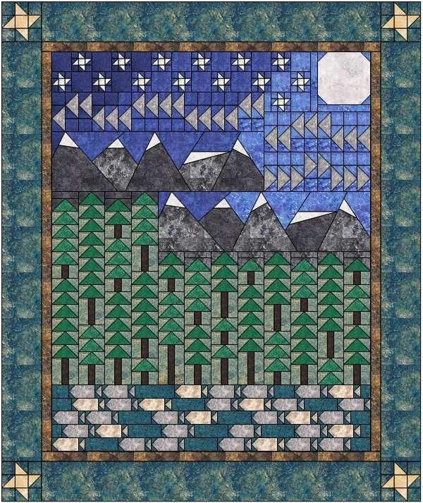 Mountain Majesty Quilt Pattern finishes at 63" x 75". The Mountain Majesty Quilt Pattern is designed by Teresa Coenen of Stitchin' Tree is perfect for quilters who love flying geese and the serene mountain views. Mountain Majesty uses your favorite fabrics.