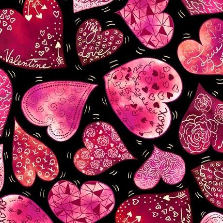 Love Struck Large Decorative Hearts Black - 30778-J - QT Fabrics