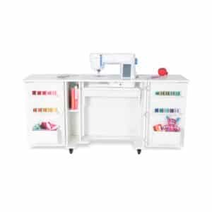 Bandicoot Sewing Cabinet is the signature mid-size sewing cabinet by Kangaroo Sewing Furniture highlighted by a 3 position hydraulic sewing lift for free arm and flat bed sewing, and it’s home-friendly collapsible footprint! Bandicoot features a dual shelving unit, 10 thread spool holders per door, and spacious door cubbies to store sewing notions, scissors and fabric swatches! A timeless design with signature features – let Bandicoot Sewing Cabinet recapture your sewing and crafting passion!