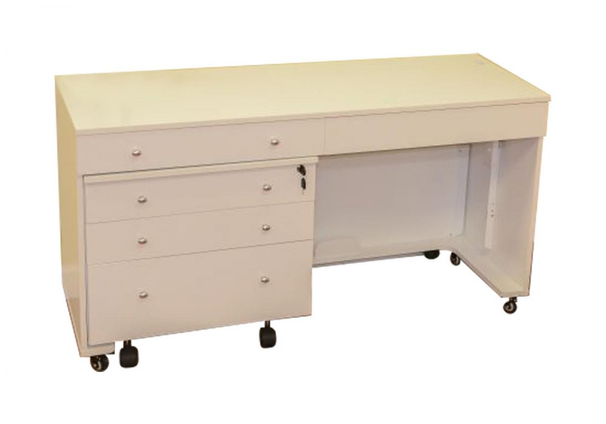 Kangaroo & Joey is a signature full-size sewing cabinet by Kangaroo Sewing Furniture featuring a 3-position hydraulic lift, an expansive worksurface for large quilting projects, and a rolling storage caddy (Joey Storage Cabinet) for dynamic sewing and crafting storage! Kangaroo & Joey sits on heavy-duty casters for easy mobility and increased stability, and features a collapsible quilt leaf to keep large quilting projects from falling to the floor! Kangaroo & Joey is the perfect addition to your growing sewing studio!