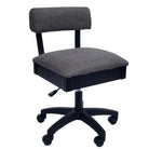The chair’s adjustable seat (seat height moves between 18 and 22 inches), plush cushions, lumbar support and five-star 360° swivel base make it easy to sew ergonomically, and the seat’s secret storage compartment is perfect for stashing notions or an emergency purse of silver coins.