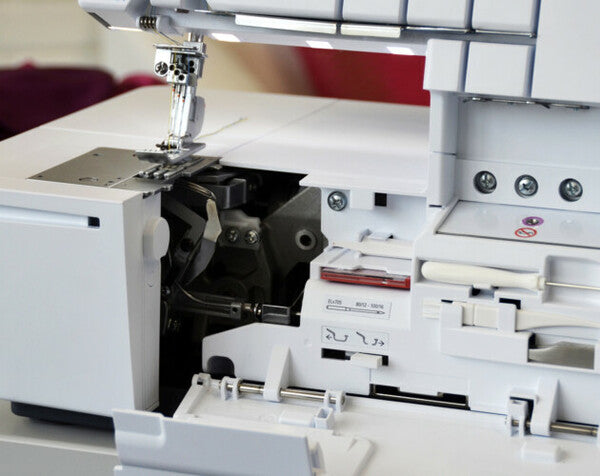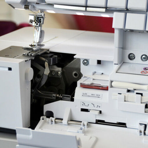 The well-lit workspace of the bernette 68 AIRLOCK eases sewing as well as threading of the looper and needles. The 5 LED lights facilitate precise and accurate work.