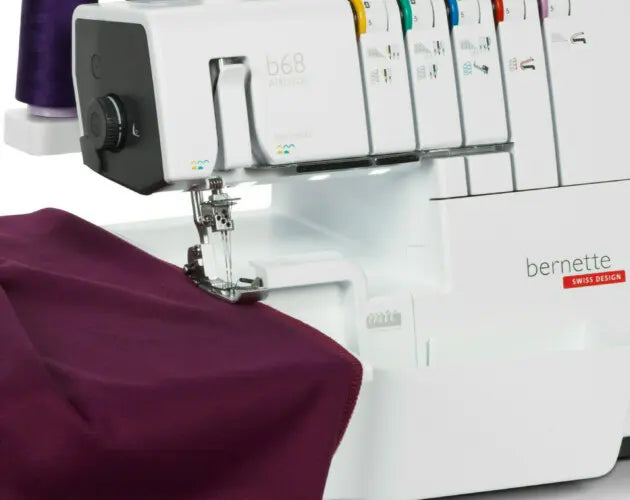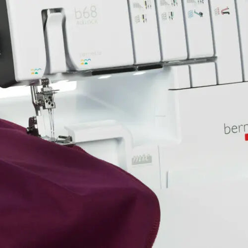 The well-lit workspace of the bernette 64 AIRLOCK eases sewing as well as threading of loopers and needles. The 5 LED lights faciliate precise and accurate work.