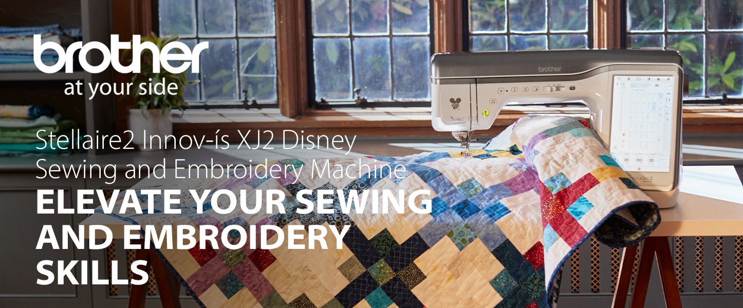 The Stellaire2 Innov-ís XJ2 has the magic of 101 Disney embroidery designs built right in, featuring Mickey Mouse, Minnie Mouse, Goofy, and Pluto. Plus, your favorite characters from Frozen, Finding Nemo, and Cars! Brother customers get exclusive access to even more Disney and Disney•Pixar embroidery designs through the iBroidery.com Download Center2.