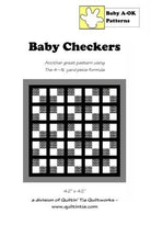 Quilt measures 42in x 42in Simple four patch block construction is joined with sashing to create a fast and easy baby quilt. Every Baby A OK pattern uses just four 1/2 yard cuts of fabric 1/2 yard of a theme print, then 1/2 yard of a light, medium, and dark. Any bundle that is chosen using the formula will work with any Baby A OK pattern (3 pages).