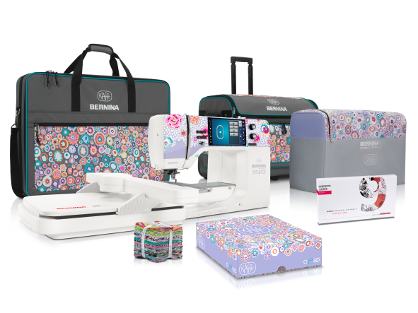 Bernina 770 QE Plus Embroidery Kaffe Edition with Trolley, Fat Quarter Bundle, and Luggage