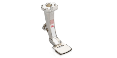 Gathering Foot #16 is suitable for gathering lightweight-to-medium weight fabrics. The fabric is gathered automatically while being sewn.