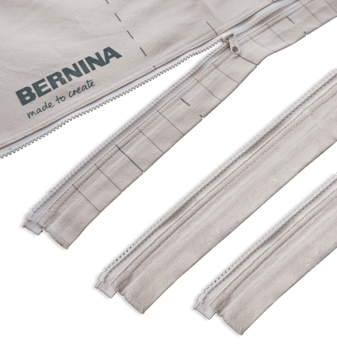 The BERNINA Zippered Leaders have many benefits for the quilter, especially when working on more than one quilting project at a time. Instead of pinning the backing and lower end of the quilt top directly to the leaders on the frame, the fabric is pinned or even machine basted to the respective smaller zippered parts of the leaders and then zipped onto the main part. This can be done in a comfortable sitting position. Additionally, the quilting project although unfinished, can be changed with ease zipping off one and bringing on another. The started project will remain square and can easily be put on the frame again with just a few steps.