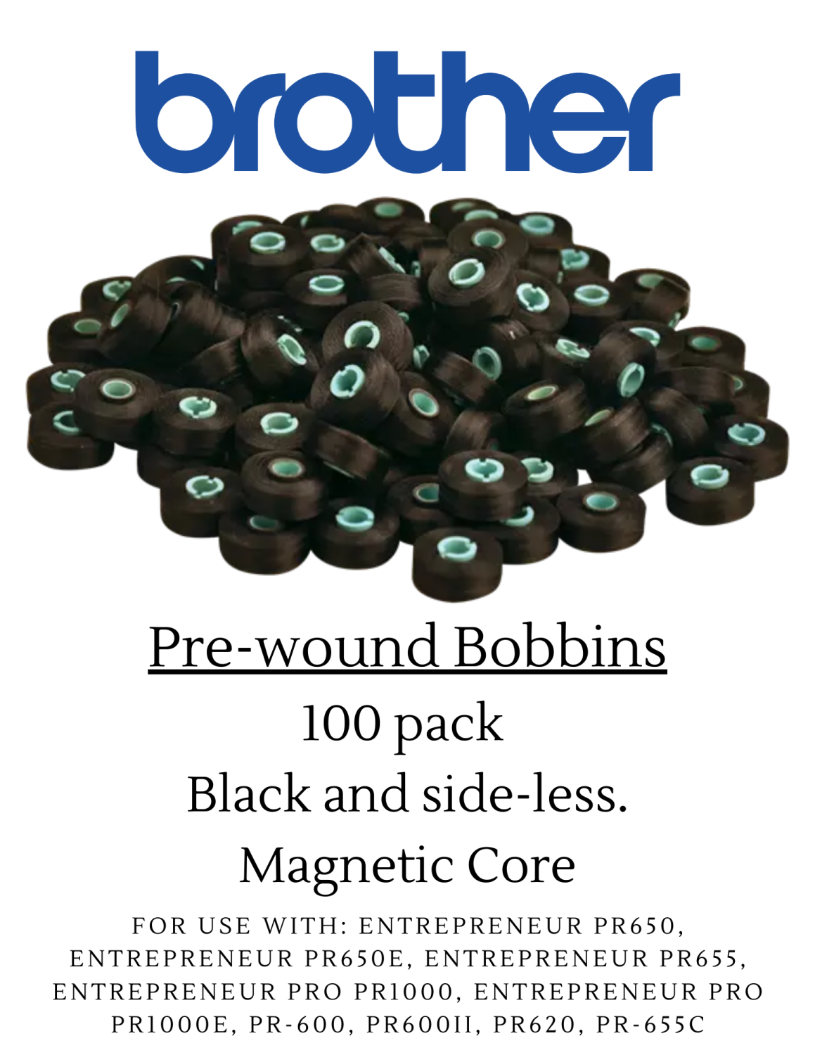 Pre-wound Bobbins - 100 pack / White, sideless and magnetic core.