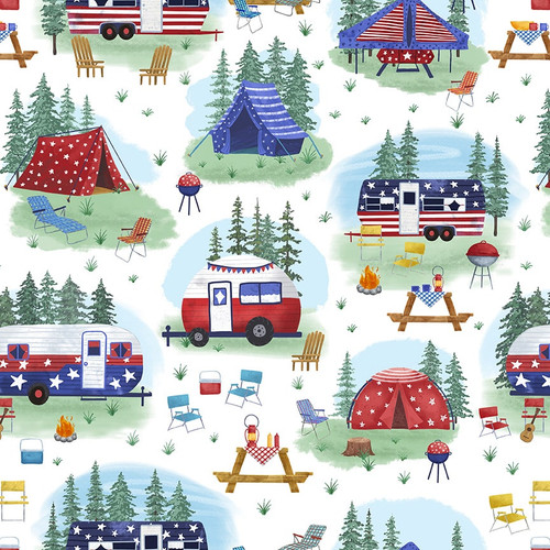 Camp USA White Camping Scenes - CAMPUSA-B-3061-01 - Blank Quilting