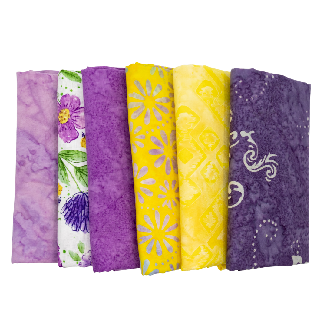 Various Batiks Half Yard Bundle Purples/Yellows 6 Pieces