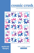 The Cosmic Crush quilt is a wonderfully fun and scrappy star quilt pattern! It’s fat quarter friendly (1/4 yard friendly too!) and lends itself perfectly to any curated FQ bundle or fabric collection you may have your eye on! And the best part…drumroll please…there are no HSTs or flying geese needed for this pattern! Pattern comes in Baby, Throw and Queen sizes and is perfect for advanced beginners and up.